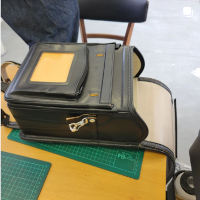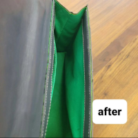 内側の内布を、グリーンの豚革へ交換いたしました。